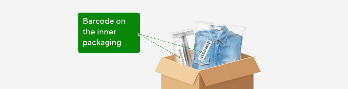 1. Place each item in its original or inner packaging, ensuring the barcode is displayed on the inner packaging.